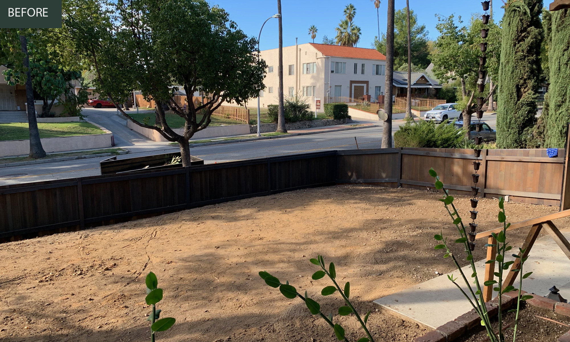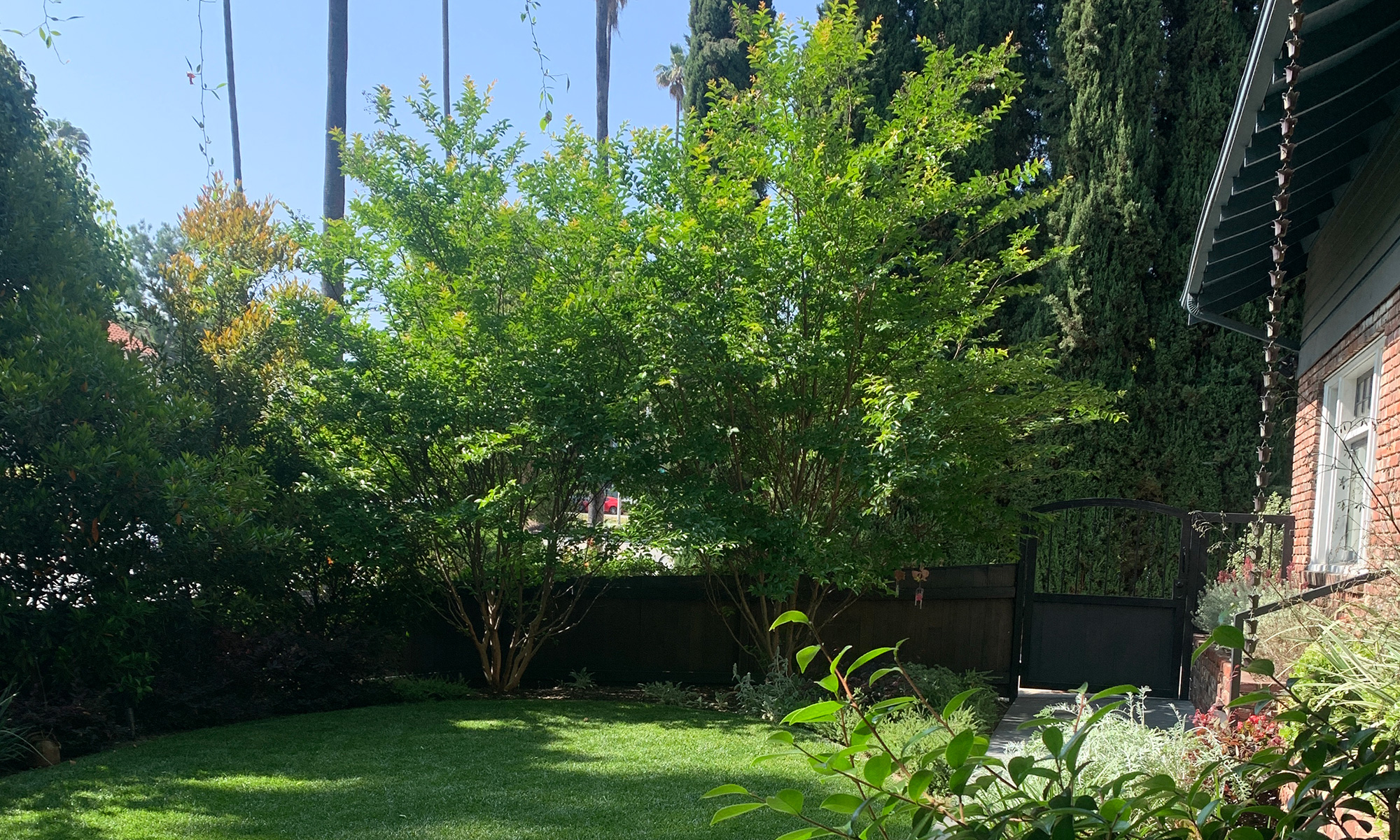 A beautiful Pasadena craftsman home needed a new layout for the front yard. We started by screening it with a fence and then layered it with a dark green hedge and flowering trees. The front porch was planted with shrubs and plants that flower to accent the home.