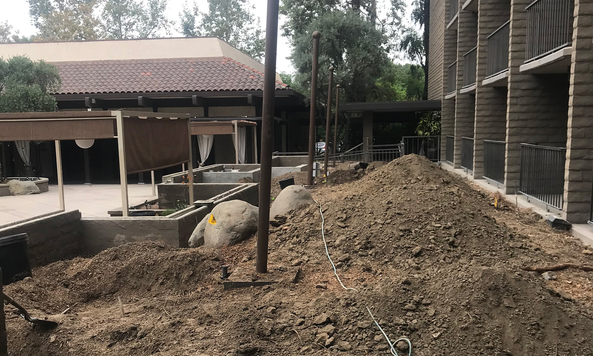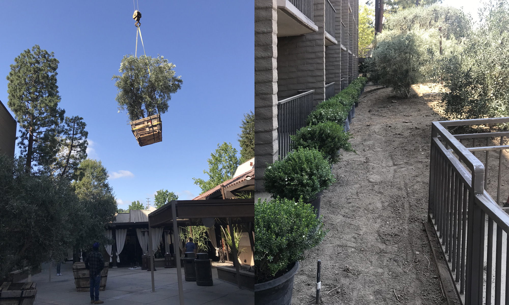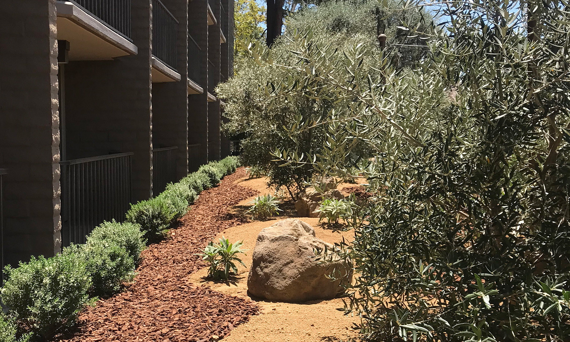 The Garland Hotel is a boutique hotel in North Hollywood. The owners of The Garland asked WG DESIGN to help them renovate their courtyard, a prominent feature at the hotel. The garden is a narrow strip which originally was filled with towering pine trees that needed to be removed. We redesigned the courtyard with Olive trees, orange Kangaroo Paws and various drought tolerant plants. The orange color was a recurring theme to match the motif painted on the hotel walls.