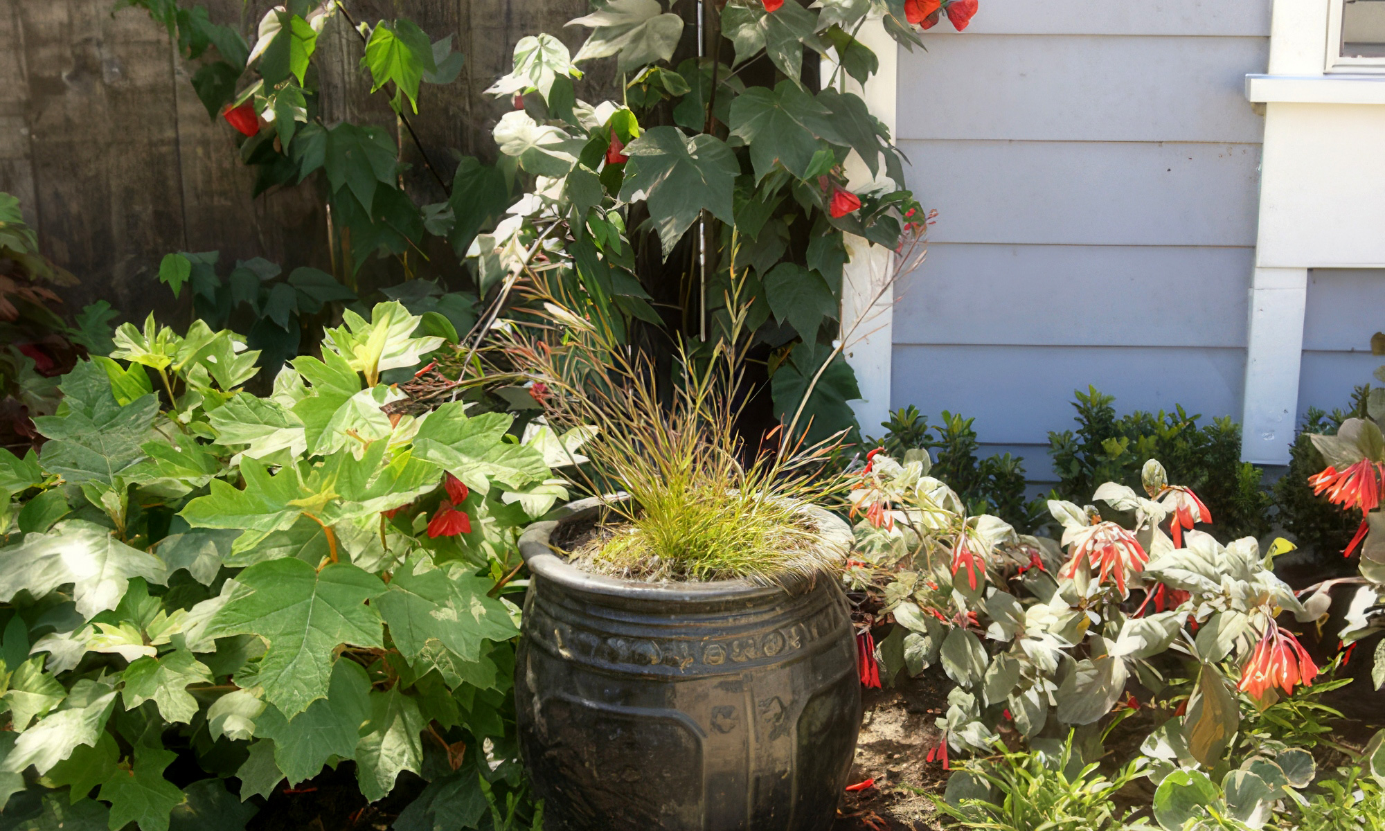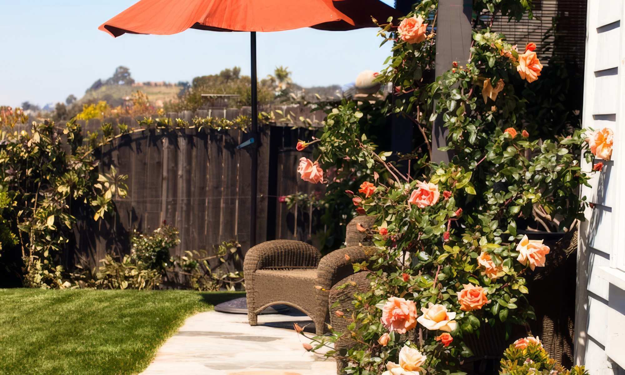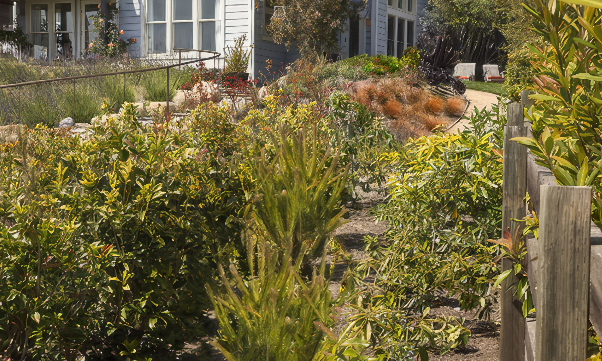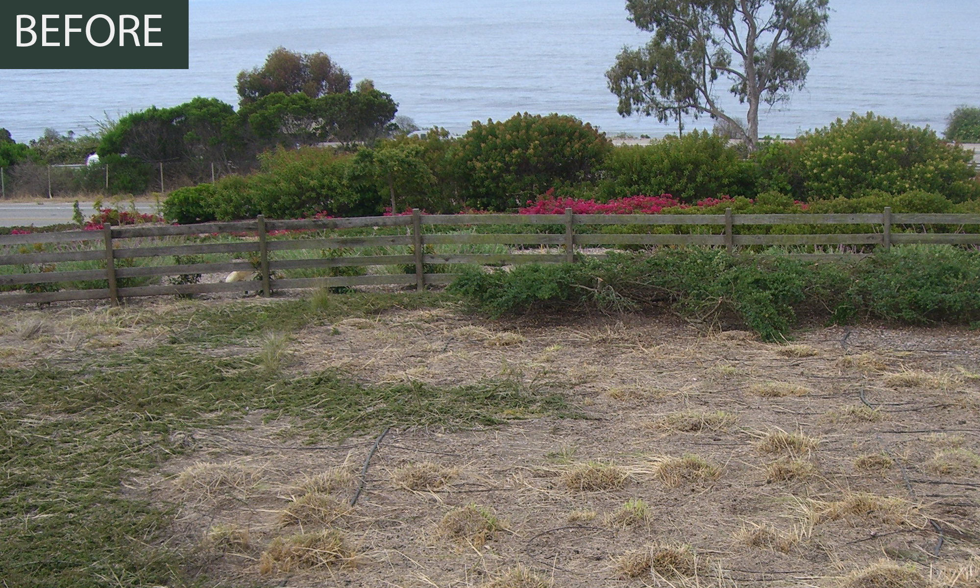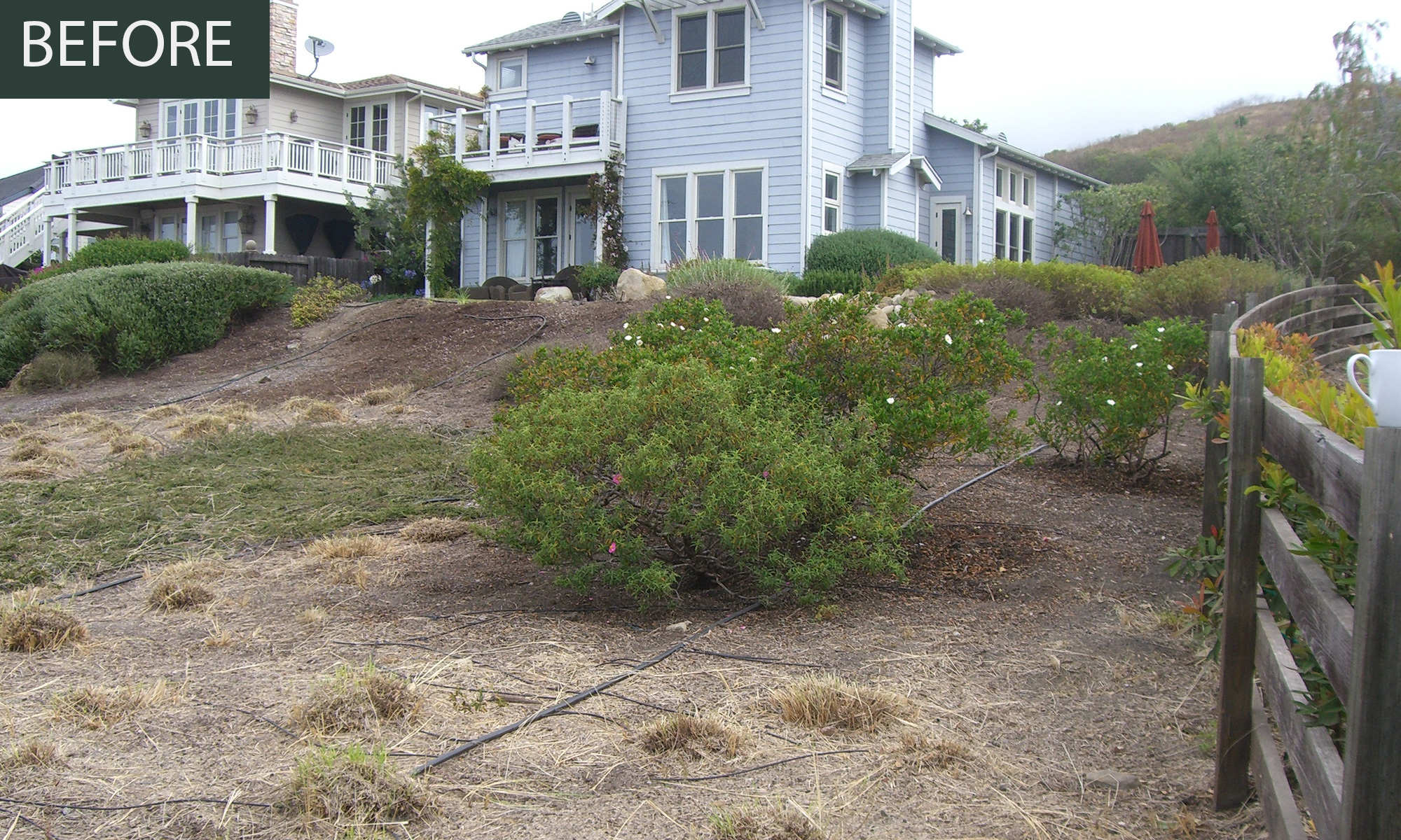 This residence in Summerland began as a project to clean up a neglected property. The owner had a handicap that did not allow her to walk easily from her home to outside and this became the guiding factor for how we redesigned the garden and hardscape and though it was challenging, it was very rewarding. The entire property is now designed for ease of walking and every step is a maximum of 3” high. The existing drainage field became a staircase with a natural slope and a handrail to aide in safety.