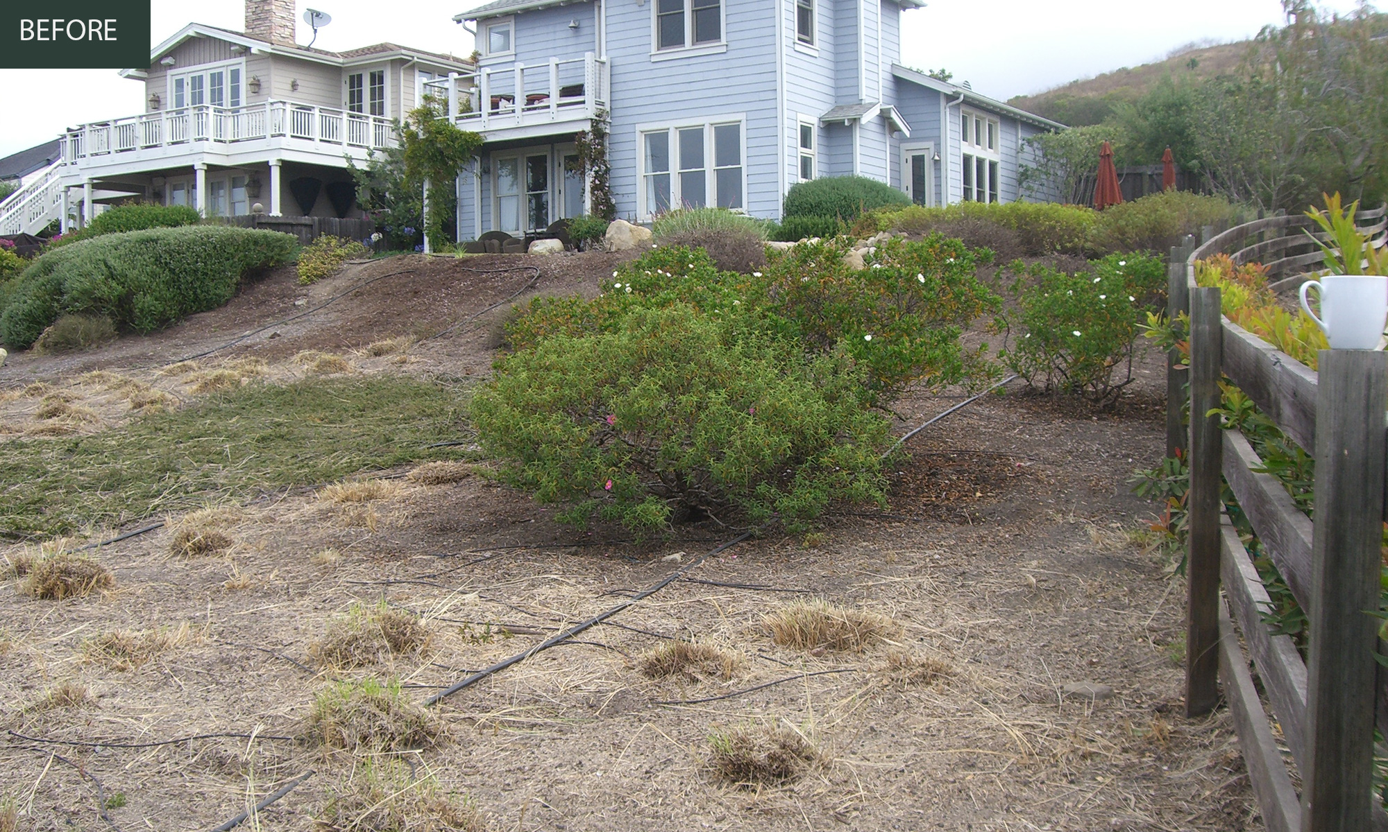 A beautiful property overlooking the ocean was designed to integrate the views, the sloping landscape and the sophisticated style of the owner. The hillside was planted with a field of lavender while the flat portion at the base became a Patanque court. The final outcome was an exquisite amalgamation of rugged rock walls, groupings of colorful and fragrant plants, a sculptural staircase and hand rail, a seamless patio from the house to the terrace.